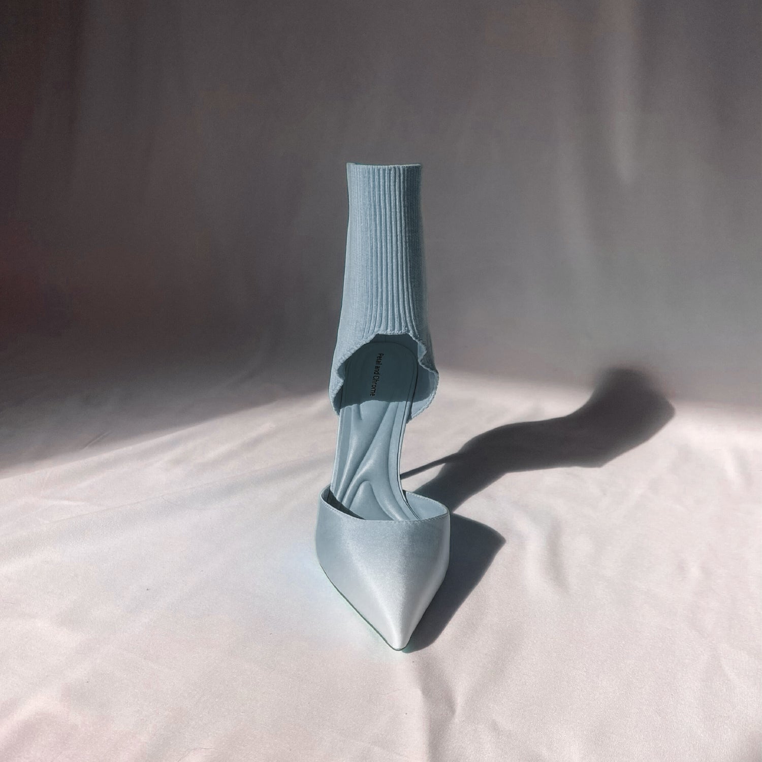 - Knit ankle detail and satin ombré toe combine stability and style, delivering effortless sophistication with comfortable wear.